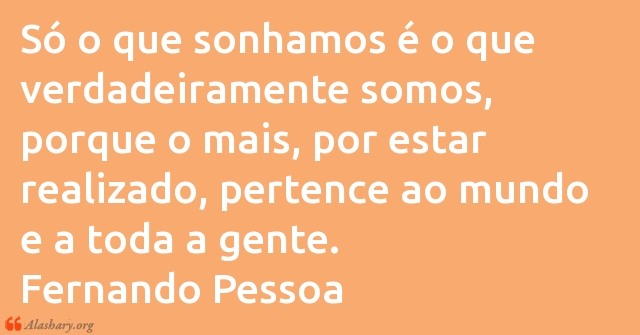 Só o que sonhamos é o que verdadeiramente somos, porque o mais, por estar realizado, pertence ao mundo e a toda a gente.