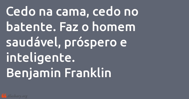 Cedo na cama, cedo no batente. Faz o homem saudável, próspero e inteligente. Benjamin Franklin