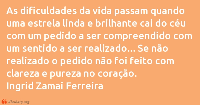 As dificuldades da vida passam quando uma estrela linda e brilhante cai do céu com um pedido a ser compreendido com um sentido a ser realizado... Se não realizado o pedido não foi feito com clareza e pureza no coração.