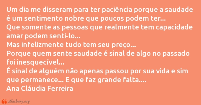 Um dia me disseram para ter paciência porque a saudade é um sentimento nobre que poucos podem ter...