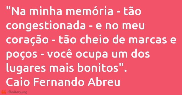 "Na minha memória - tão congestionada - e no meu coração - tão cheio de marcas e poços - você ocupa um dos lugares mais bonitos".