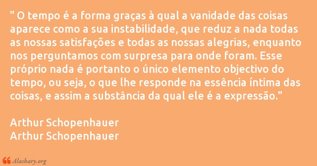 " O tempo é a forma graças à qual a vanidade das coisas aparece como a sua instabilidade, que reduz a nada todas as nossas satisfações e todas as nossas alegrias, enquanto nos perguntamos com surpresa para onde foram. Esse próprio nada é portanto o único elemento objectivo do tempo, ou seja, o que lhe responde na essência íntima das coisas, e assim a substância da qual ele é a expressão."