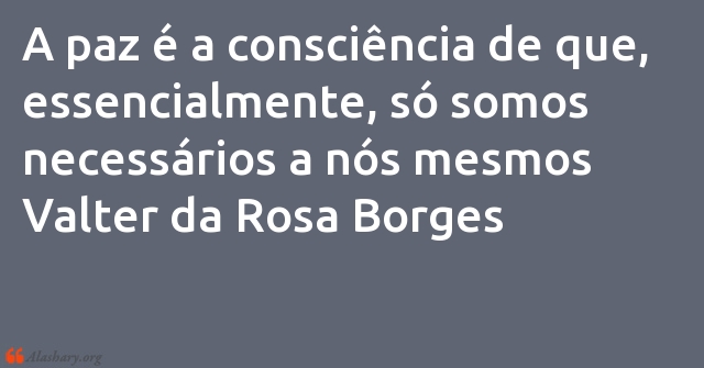 A paz é a consciência de que, essencialmente, só somos necessários a nós mesmos Valter da Rosa Borges