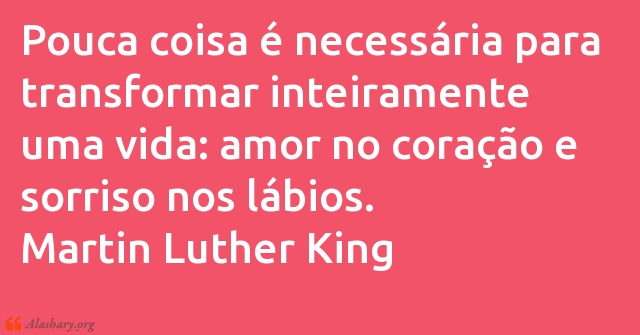 Pouca coisa é necessária para transformar inteiramente uma vida: amor no coração e sorriso nos lábios. Martin Luther King