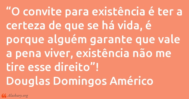 “O convite para existência é ter a certeza de que se há vida, é porque alguém garante que vale a pena viver, existência não me tire esse direito”!