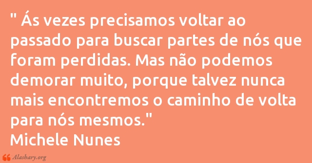 " Ás vezes precisamos voltar ao passado para buscar partes de nós que foram perdidas. Mas não podemos demorar muito, porque talvez nunca mais encontremos o caminho de volta para nós mesmos." Michele Nunes