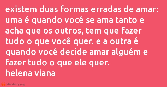 existem duas formas erradas de amar: uma é quando você se ama tanto e acha que os outros, tem que fazer tudo o que você quer. e a outra é quando você decide amar alguém e fazer tudo o que ele quer. helena viana