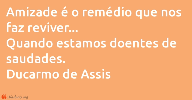 Amizade é o remédio que nos faz reviver... Quando estamos doentes de saudades. Ducarmo de Assis