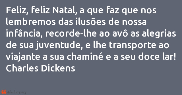 Feliz, feliz Natal, a que faz que nos lembremos das ilusões de nossa infância, recorde-lhe ao avô as alegrias de sua juventude, e lhe transporte ao viajante a sua chaminé e a seu doce lar! Charles Dickens