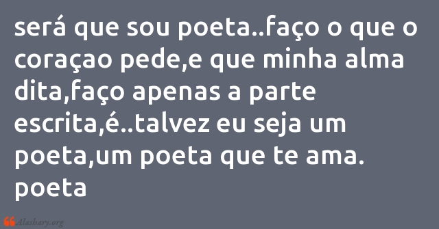 será que sou poeta..faço o que o coraçao pede,e que minha alma dita,faço apenas a parte escrita,é..talvez eu seja um poeta,um poeta que te ama.