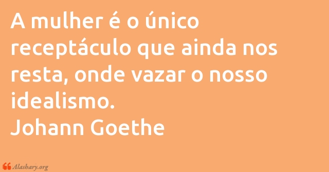 A mulher é o único receptáculo que ainda nos resta, onde vazar o nosso idealismo. Johann Goethe