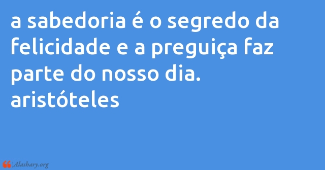 a sabedoria é o segredo da felicidade e a preguiça faz parte do nosso dia. aristóteles