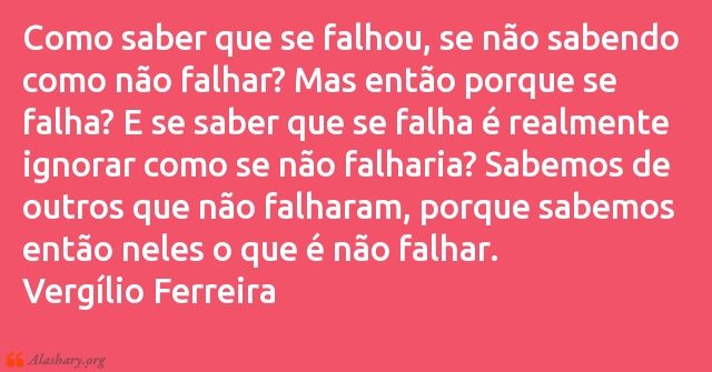 Como saber que se falhou, se não sabendo como não falhar? Mas então porque se falha? E se saber que se falha é realmente ignorar como se não falharia? Sabemos de outros que não falharam, porque sabemos então neles o que é não falhar.