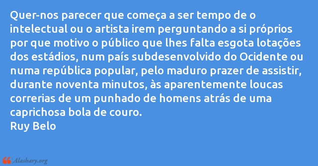 Quer-nos parecer que começa a ser tempo de o intelectual ou o artista irem perguntando a si próprios por que motivo o público que lhes falta esgota lotações dos estádios, num país subdesenvolvido do Ocidente ou numa república popular, pelo maduro prazer de assistir, durante noventa minutos, às aparentemente loucas correrias de um punhado de homens atrás de uma caprichosa bola de couro.