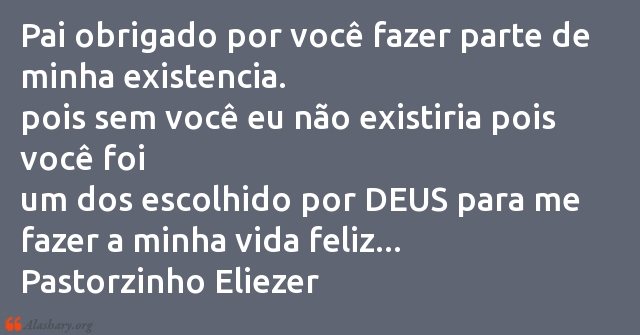 Pai obrigado por você fazer parte de minha existencia.