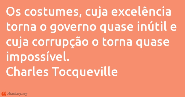 Os costumes, cuja excelência torna o governo quase inútil e cuja corrupção o torna quase impossível. Charles Tocqueville