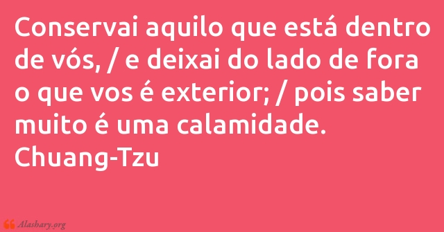 Conservai aquilo que está dentro de vós, / e deixai do lado de fora o que vos é exterior; / pois saber muito é uma calamidade. Chuang-Tzu