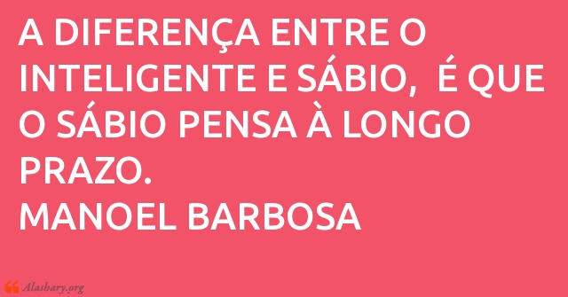 A DIFERENÇA ENTRE O INTELIGENTE E SÁBIO, É QUE O SÁBIO PENSA À LONGO PRAZO. MANOEL BARBOSA