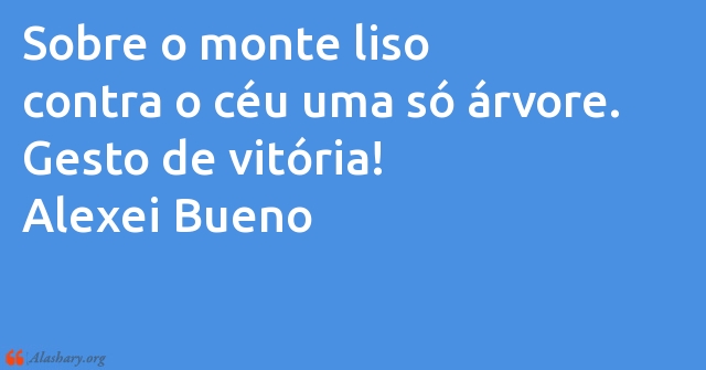 Sobre o monte liso contra o céu uma só árvore. Gesto de vitória! Alexei Bueno