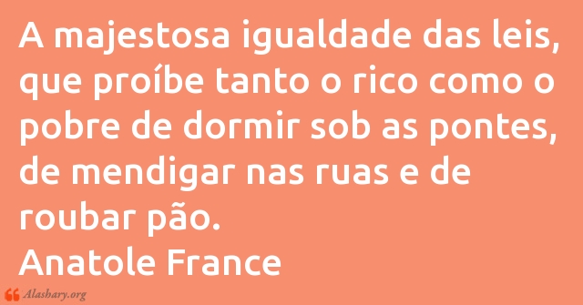 A majestosa igualdade das leis, que proíbe tanto o rico como o pobre de dormir sob as pontes, de mendigar nas ruas e de roubar pão.