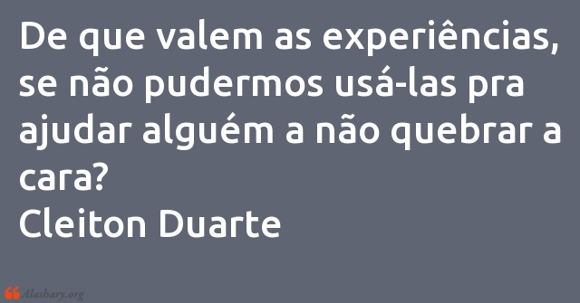 De que valem as experiências, se não pudermos usá-las pra ajudar alguém a não quebrar a cara?