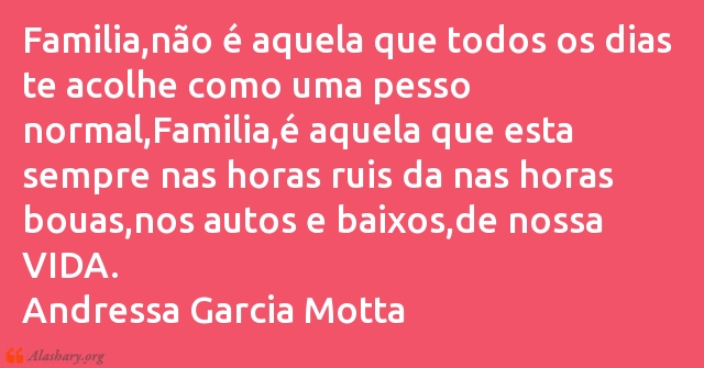 Familia,não é aquela que todos os dias te acolhe como uma pesso normal,Familia,é aquela que esta sempre nas horas ruis da nas horas bouas,nos autos e baixos,de nossa VIDA.