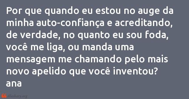 Por que quando eu estou no auge da minha auto-confiança e acreditando, de verdade, no quanto eu sou foda, você me liga, ou manda uma mensagem me chamando pelo mais novo apelido que você inventou?
