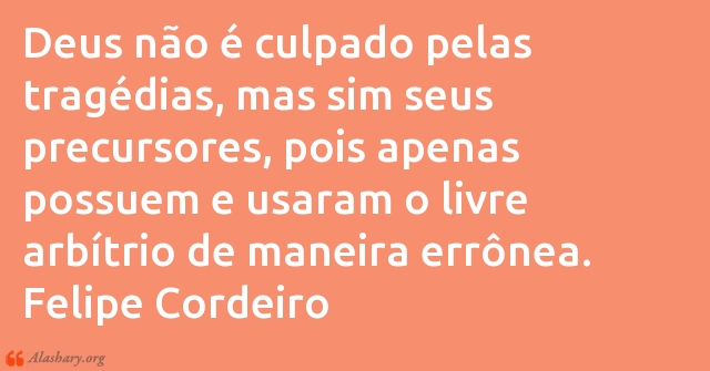 Deus não é culpado pelas tragédias, mas sim seus precursores, pois apenas possuem e usaram o livre arbítrio de maneira errônea.