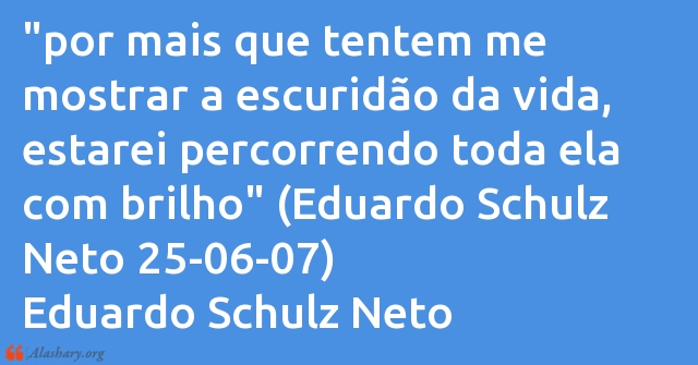 "por mais que tentem me mostrar a escuridão da vida, estarei percorrendo toda ela com brilho" (Eduardo Schulz Neto 25-06-07)