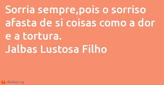 Sorria sempre,pois o sorriso afasta de si coisas como a dor e a tortura. Jalbas Lustosa Filho