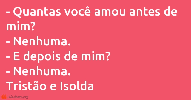 - Quantas você amou antes de mim? - Nenhuma. - E depois de mim? - Nenhuma. Tristão e Isolda
