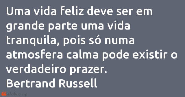 Uma vida feliz deve ser em grande parte uma vida tranquila, pois só numa atmosfera calma pode existir o verdadeiro prazer. Bertrand Russell