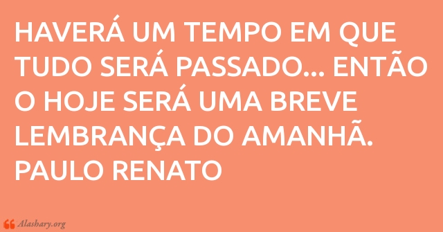 HAVERÁ UM TEMPO EM QUE TUDO SERÁ PASSADO... ENTÃO O HOJE SERÁ UMA BREVE LEMBRANÇA DO AMANHÃ. PAULO RENATO