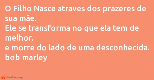 O Filho Nasce atraves dos prazeres de sua mãe. Ele se transforma no que ela tem de melhor. e morre do lado de uma desconhecida. bob marley