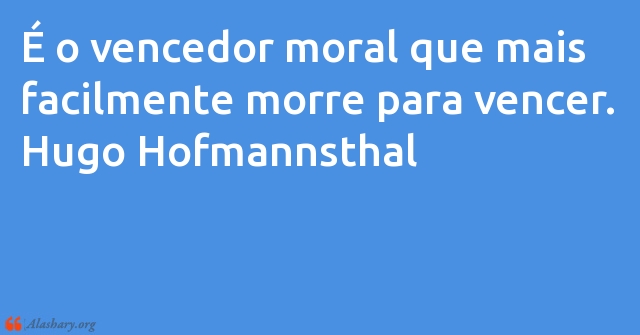 É o vencedor moral que mais facilmente morre para vencer. Hugo Hofmannsthal
