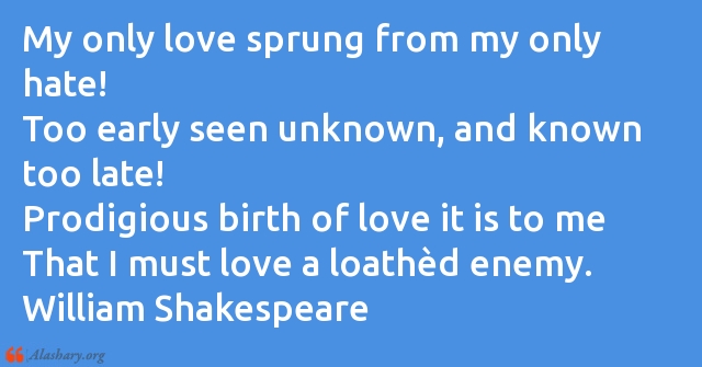 My only love sprung from my only hate!