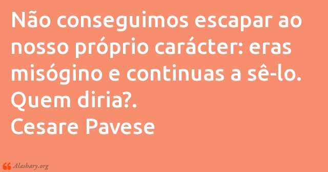 Não conseguimos escapar ao nosso próprio carácter: eras misógino e continuas a sê-lo. Quem diria?. Cesare Pavese