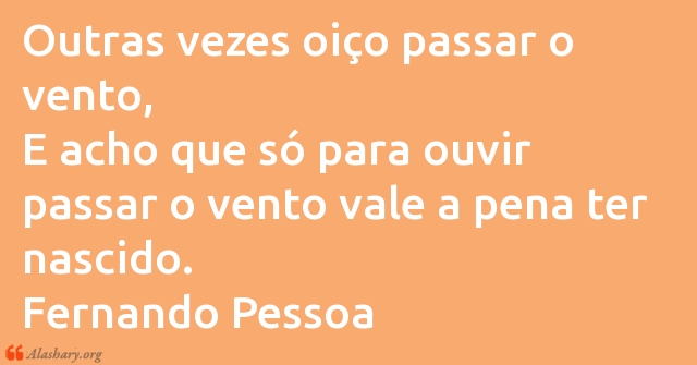 Outras vezes oiço passar o vento, E acho que só para ouvir passar o vento vale a pena ter nascido. Fernando Pessoa