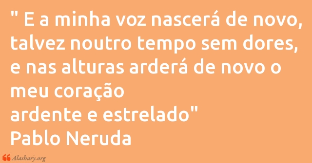 " E a minha voz nascerá de novo, talvez noutro tempo sem dores, e nas alturas arderá de novo o meu coração ardente e estrelado" Pablo Neruda