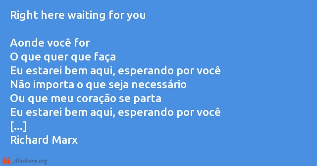 Right here waiting for you Aonde você for O que quer que faça Eu estarei bem aqui, esperando por você Não importa o que seja necessário Ou que meu coração se parta Eu estarei bem aqui, esperando por você [...] Richard Marx