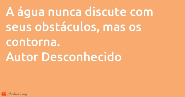 A água nunca discute com seus obstáculos, mas os contorna. Autor Desconhecido