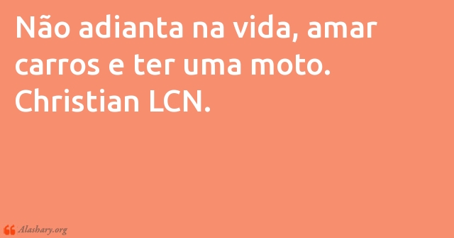 Não adianta na vida, amar carros e ter uma moto. Christian LCN.