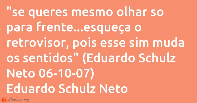 "se queres mesmo olhar so para frente...esqueça o retrovisor, pois esse sim muda os sentidos" (Eduardo Schulz Neto 06-10-07) Eduardo Schulz Neto