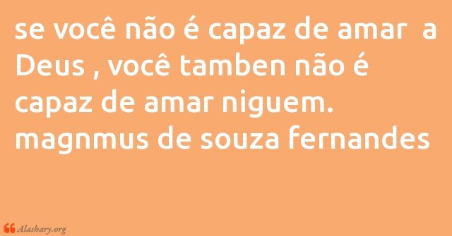 se você não é capaz de amar a Deus , você tamben não é capaz de amar niguem. magnmus de souza fernandes