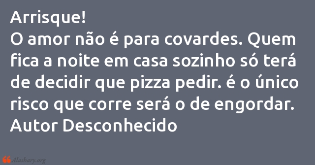 O amor não é para covardes. Quem fica a noite em casa sozinho só terá de decidir que pizza pedir. é o único risco que corre será o de engordar.