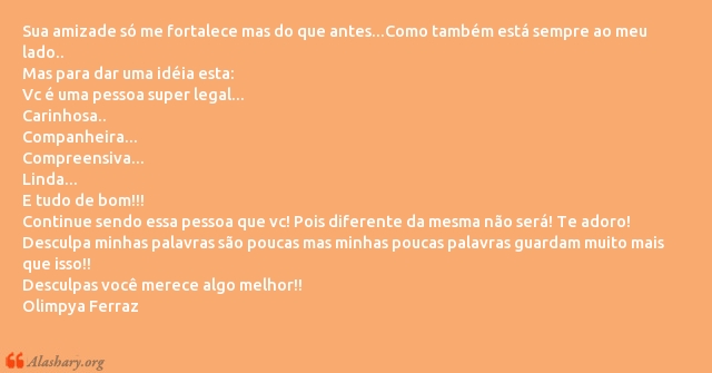 Sua amizade só me fortalece mas do que antes...Como também está sempre ao meu lado..
