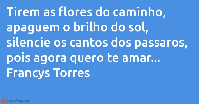 Tirem as flores do caminho, apaguem o brilho do sol, silencie os cantos dos passaros, pois agora quero te amar...
