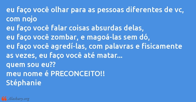 eu faço você olhar para as pessoas diferentes de vc, com nojo