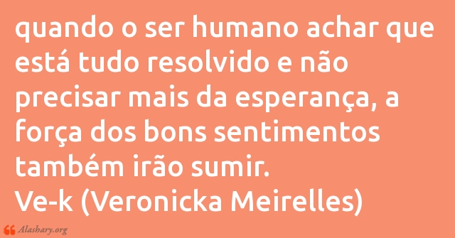 quando o ser humano achar que está tudo resolvido e não precisar mais da esperança, a força dos bons sentimentos também irão sumir.