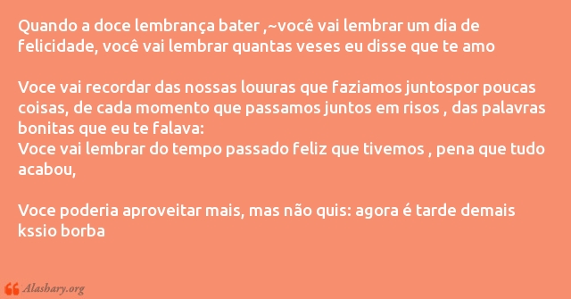 Quando a doce lembrança bater ,~você vai lembrar um dia de felicidade, você vai lembrar quantas veses eu disse que te amo